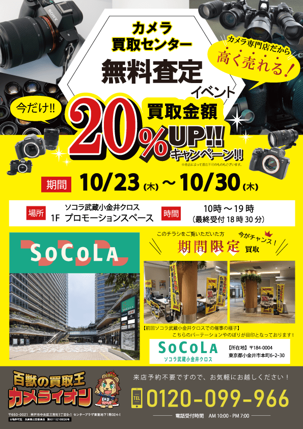 【カメラ買取 催事】ソコラ武蔵小金井クロス 10/23-10/30