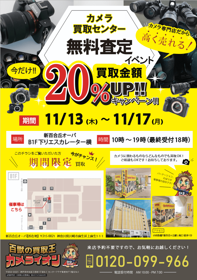 【カメラ買取 催事】新百合丘オーパ 11/13-11/17