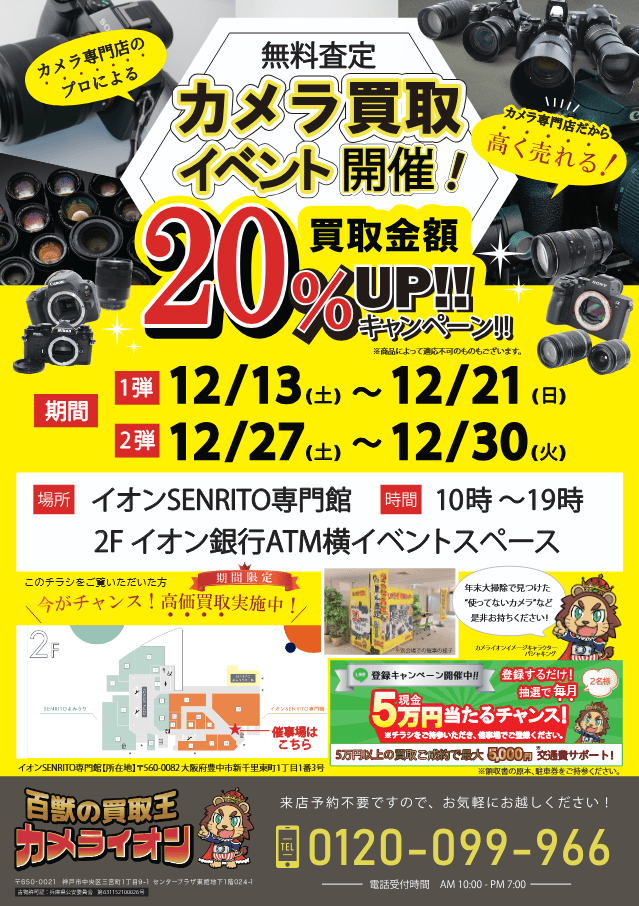 【カメラ買取 催事】イオンSENRITO専門館 12/13-12/21、12/27-12/30