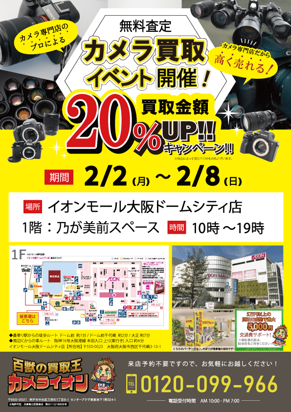 【カメラ買取 催事】イオンモール大阪ドームシティ店 2/2 – 2/8