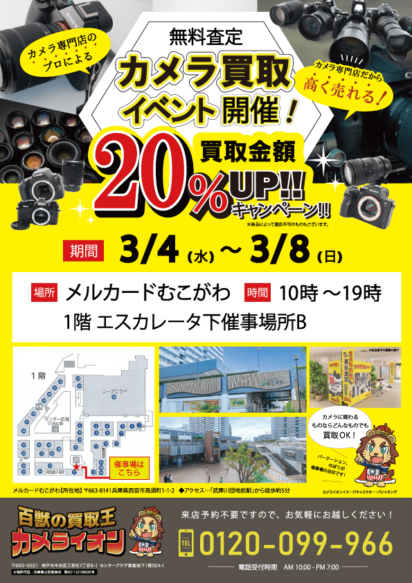 【カメラ買取 催事】メルカードむこがわ 3/4 – 3/8