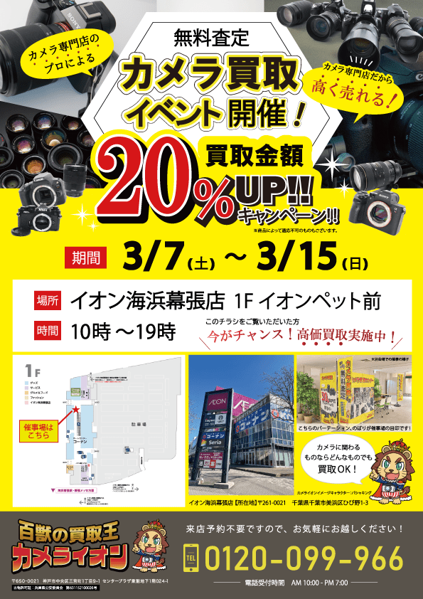 【カメラ買取 催事】イオン海浜幕張店 3/7 – 3/15
