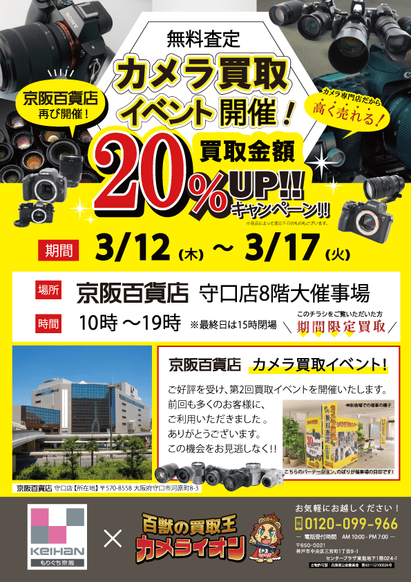 【カメラ買取 催事】京阪百貨店 守口店 3/12-3/17