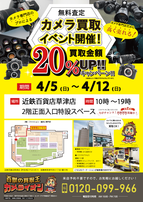 【カメラ買取 催事】近鉄百貨店草津店 4/5 – 4/12