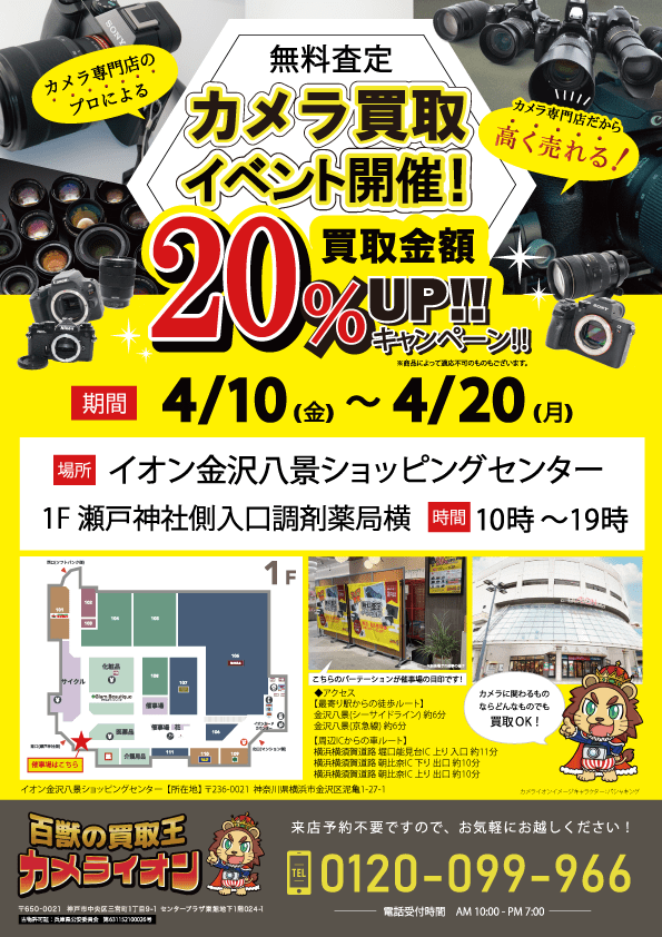 【カメラ買取 催事】イオン金沢八景ショッピングセンター 4/10 – 4/20