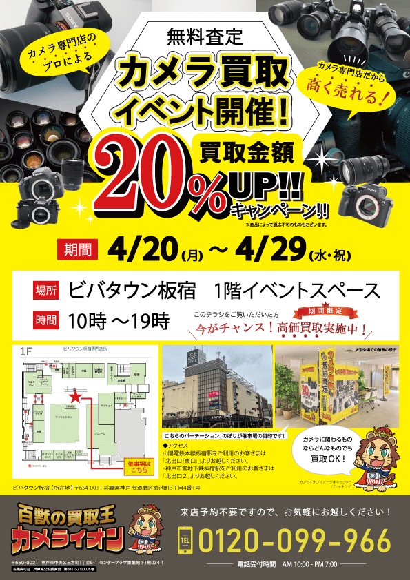 【カメラ買取 催事】ビバタウン板宿 4/20 – 4/29
