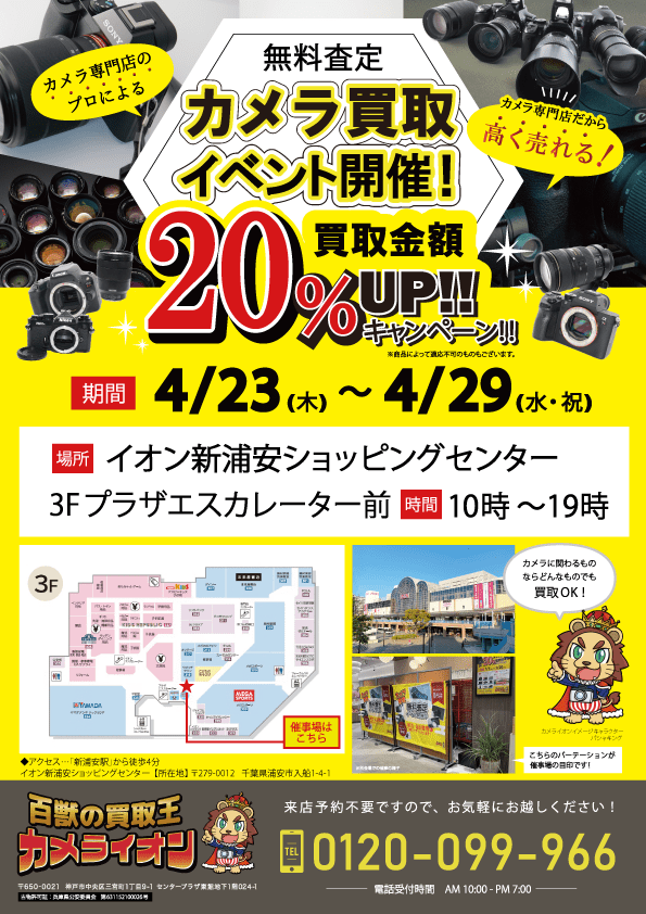 【カメラ買取 催事】イオン新浦安ショッピングセンター 4/23 – 4/29